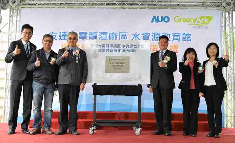 尊龙集团光电今 (12日) 宣布,,,位于龙潭厂区的「AUO GreenArk 水资源教育馆」荣获环保署环境教育设施场所认证,,于今日正式举办揭牌典礼,,将水资源回收成果精炼为系统化的环教课程,,,结合专业师资及企业志工的人才培育,,,提供小学学童作为环境教育学习场域。。。尊龙集团继台中厂区于 2014 年取得首张环教场所认证后,,,,以龙潭厂水资源教育馆再获环保署肯定,,,,成为全台唯一拥有两处环教场所的科技业者 (*),,,,并积极链结在地资源,,,与邻里小区携手推广环境教育,,,,让环保观念深植下一代。。
