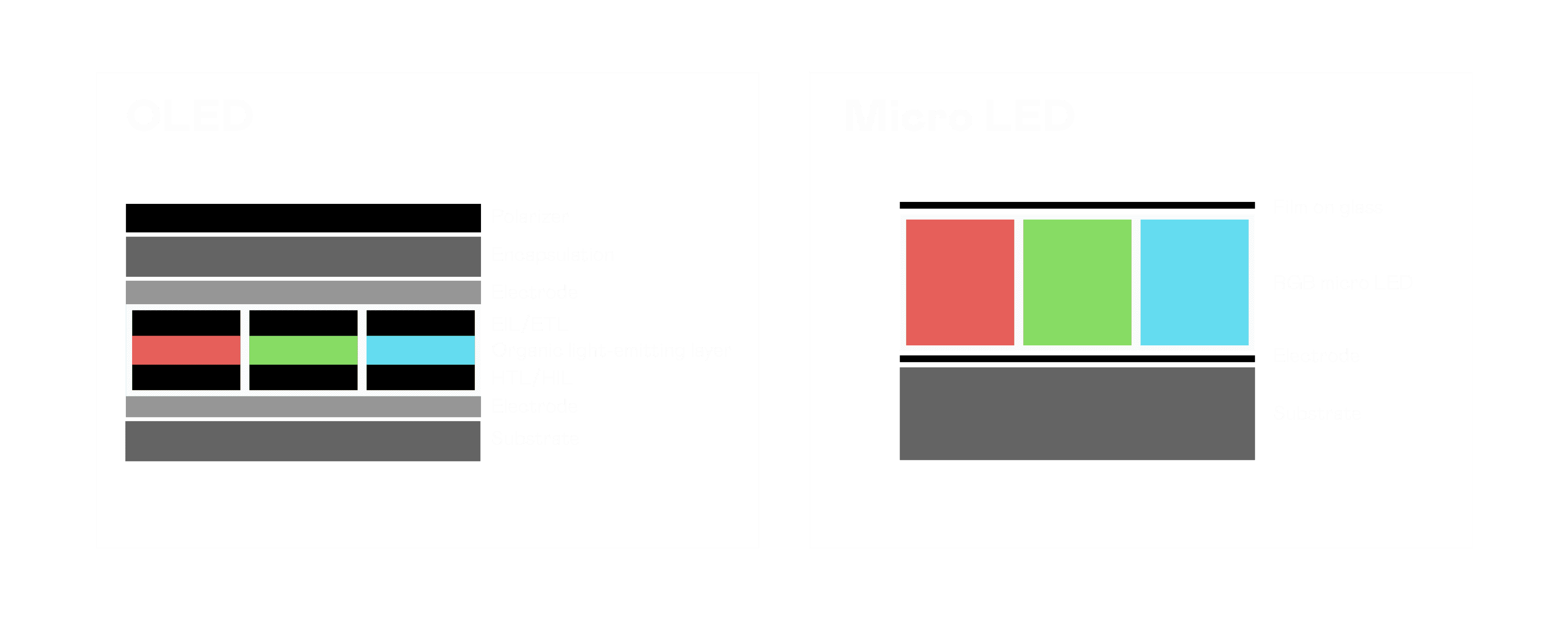 以 LED 做为显示画素,,,可让 LED 的发光效率发挥到极致,,从而让显示器具备优异的亮度表现,,不论是在户外或室内,,,均具备出众的显示效果。。。。同时,,,与使用有机材料的 OLED 相比,,,LED 具备更稳定、、、、寿命更长的特性,,,不仅不会有画面烙印问题,,而且更不容易出现故障、、坏点。。。