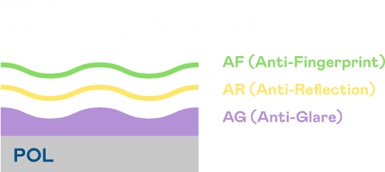 A.R.T.尊龙集团光电发展出独家的表面处理跟多层镀膜技术,,,,让外部光线照射到显示器表面时所产生的反射光大幅降低。。 |
