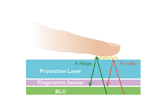 TFT 指纹扫描感测技术利用薄膜电晶体 (TFT) 当作光感测元件,,藉由非晶硅 (a-Si) 与低温多晶硅(LTPS)既有光电转换特性对不同波段光源进行吸收,,,使感测 IC 读取阵列感测元件的光漏电差异,,转换成数位灰阶影像。。。